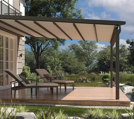 Auch die Dachgestaltung ist abhängig vom Material: Lamellendächer lassen sich leicht auf Aluminium montieren, Holzkonstruktionen benötigen spezielle Halterungen, Kunststoffdächer sind einfacher, aber weniger stabil.