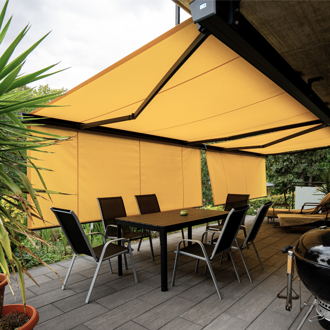 Für größere Terrassen oder exponierte Standorte bieten sich Pergolamarkisen an. Sie sind besonders stabil konstruiert und verfügen häufig über seitliche Führungsschienen, die das Tuch auch bei Wind optimal halten. Dadurch eignen sie sich hervorragend für Orte, an denen eine Standard-Markise bei stärkerem Wind nicht ausreichend Schutz bieten würde. Pergolamarkisen können zudem oft als halb geschlossener Raum genutzt werden, da sie flexibel ausfahrbare Elemente besitzen, die nicht nur Schatten, sondern auch Wetterschutz bieten.