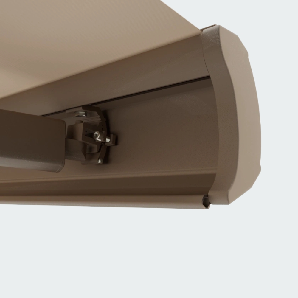 - Typ: Gelenkarmmarkise mit robuster Tragrohr‑Technik für Terrasse und Balkon