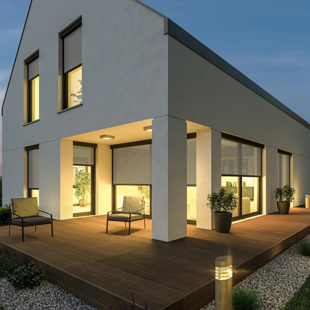 Die Lewens Micro 860 ist die ideale Senkrechtmarkise für Fenster, Türen, Fassaden oder Wintergärten, die zuverlässigen Sonnen- und Sichtschutz benötigt. Dank der optionalen Zip‑Tuchführung bleibt das Gewebe straff gespannt und widerstandsfähig gegen Windböen. Hochwertige Screen‑Stoffe oder auf Wunsch Acryl- und Polyestergewebe schützen effektiv vor Blendlicht und bieten langlebige Farbechtheit. Mit serienmäßigem Motorantrieb und optionaler Funksteuerung lässt sich die Markise bequem bedienen und flexibel an die jeweiligen Lichtverhältnisse anpassen.