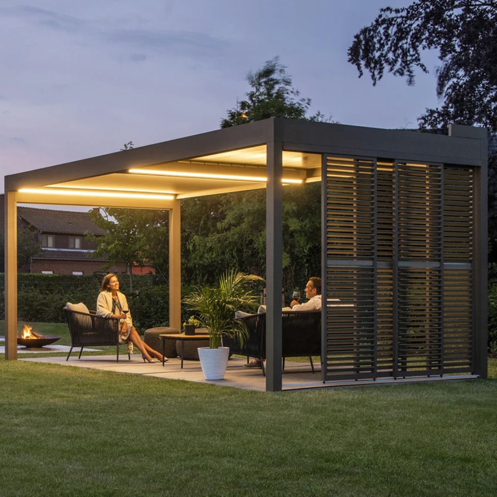 | Lamellenoptionen | Drehbare Lamellen für Sonnenschutz, optionale Screens, Outdoor-Vorhänge, Glasschiebewände, feste Wände |