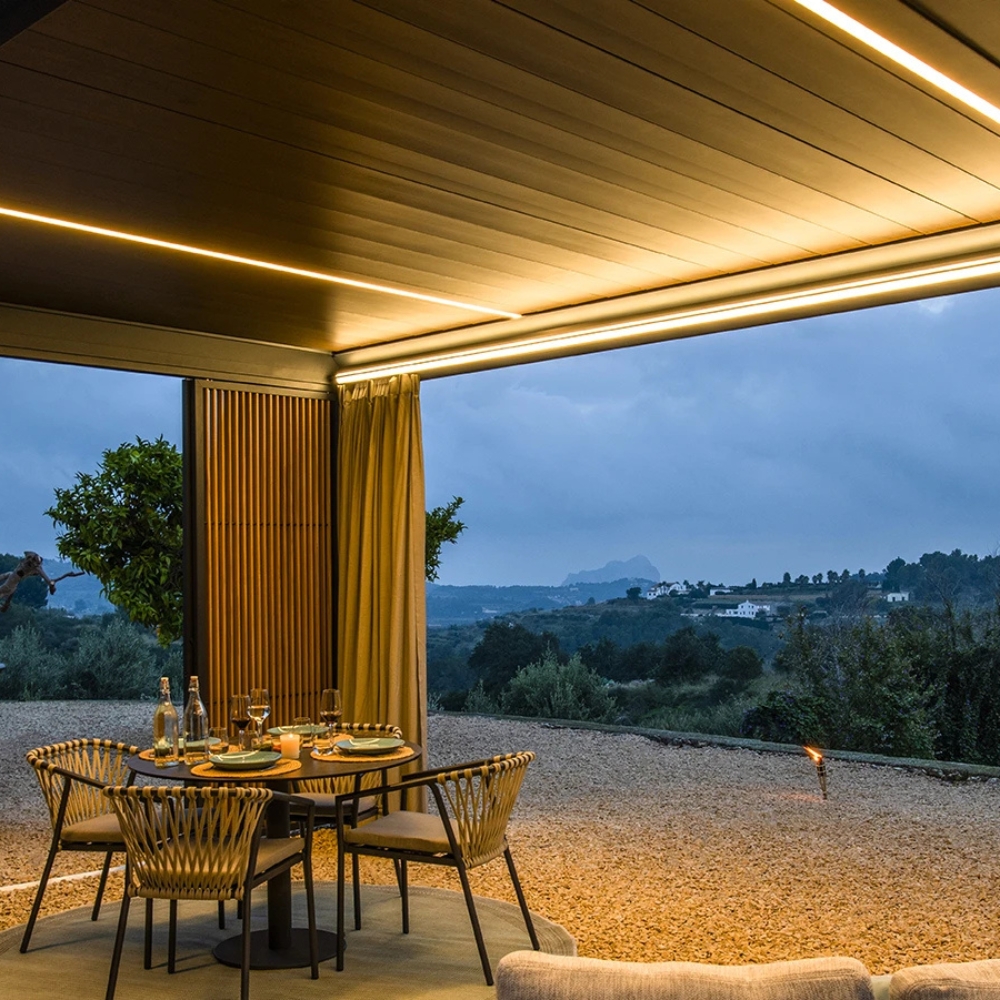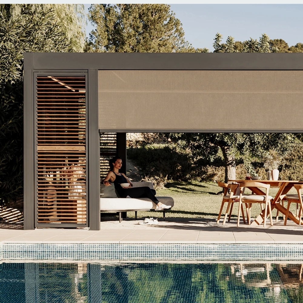 | Lamellenoptionen | Drehbare Lamellen für Sonnenschutz, optionale Screens, Outdoor-Vorhänge, Glasschiebewände, feste Wände |