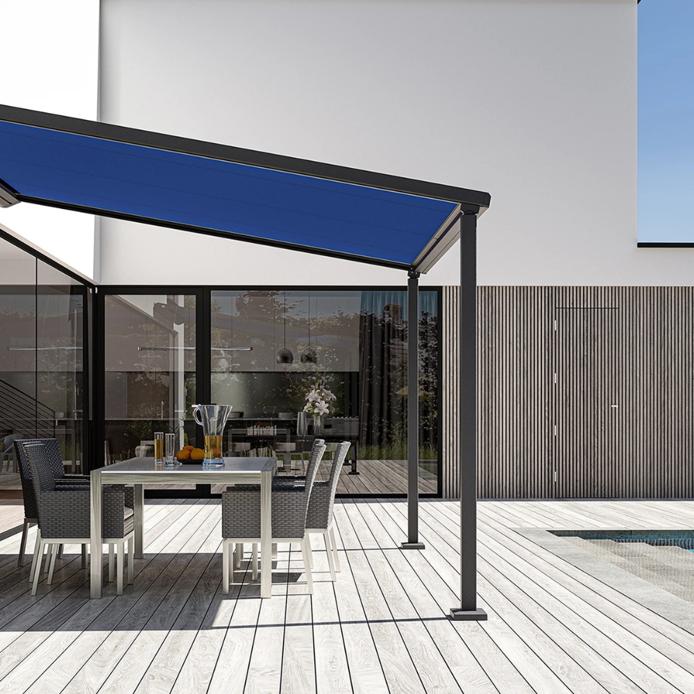 Die Topline von Aluxe ist eine robuste und langlebige Terrassenüberdachung, die besonders stabil konstruiert ist und auch bei Wind und Wetter zuverlässigen Schutz bietet. Sie lässt sich flexibel mit Polycarbonat oder Verbundsicherheitsglas eindecken und die Dachneigung zwischen 5 und 15 Grad individuell einstellen. Die Konstruktion ist großzügig dimensioniert und ermöglicht lange, durchgehende Rinnen für einen sauberen, aufgeräumten Look.