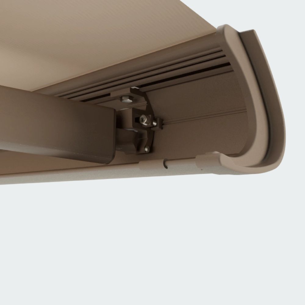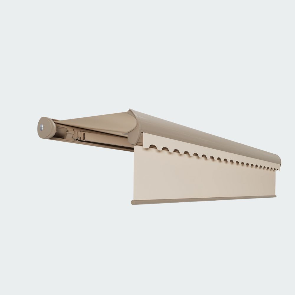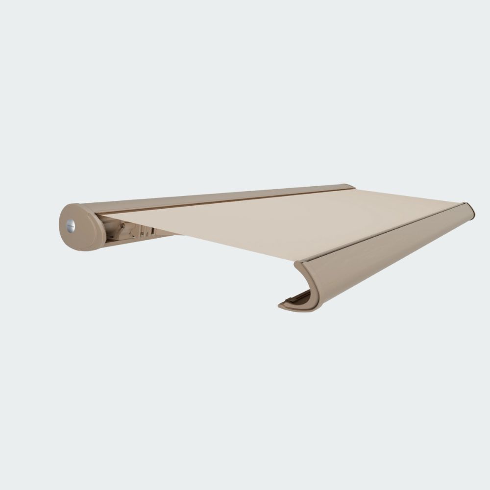 Die Markise verfügt über eine Kassette mit 13 cm Höhe, in der das Tuch beim Einfahren komplett geschützt ist vor Regen, Schmutz und anderen Witterungseinflüssen.