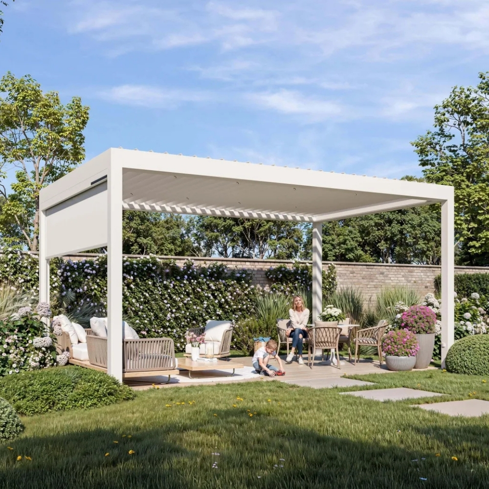 - Motorisiertes Lamellendach für flexiblen Sonnen- und Wetterschutz