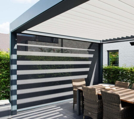 Auch die Dachgestaltung ist abhängig vom Material: Lamellendächer lassen sich leicht auf Aluminium montieren, Holzkonstruktionen benötigen spezielle Halterungen, Kunststoffdächer sind einfacher, aber weniger stabil.
