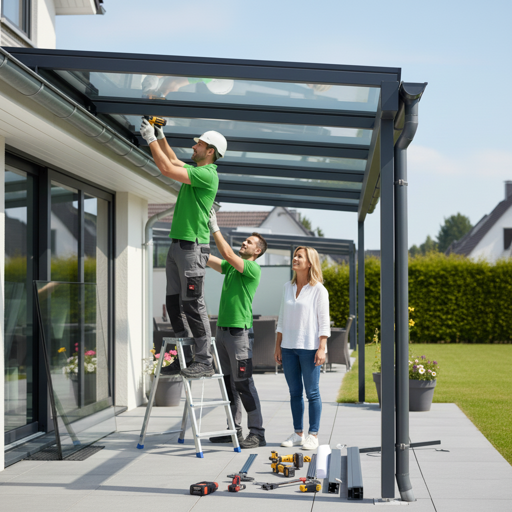 Wir übernehmen die fachgerechte Montage Deiner Terrassenüberdachung – sorgfältig, termingerecht und mit langjähriger Erfahrung. Unser Team sorgt dafür, dass alles passgenau sitzt und Du Deine neue Terrasse von Anfang an unbeschwert genießen kannst. Dabei legen wir großen Wert auf Qualität, Präzision und Sauberkeit, damit alles perfekt zu Deinem Zuhause passt.